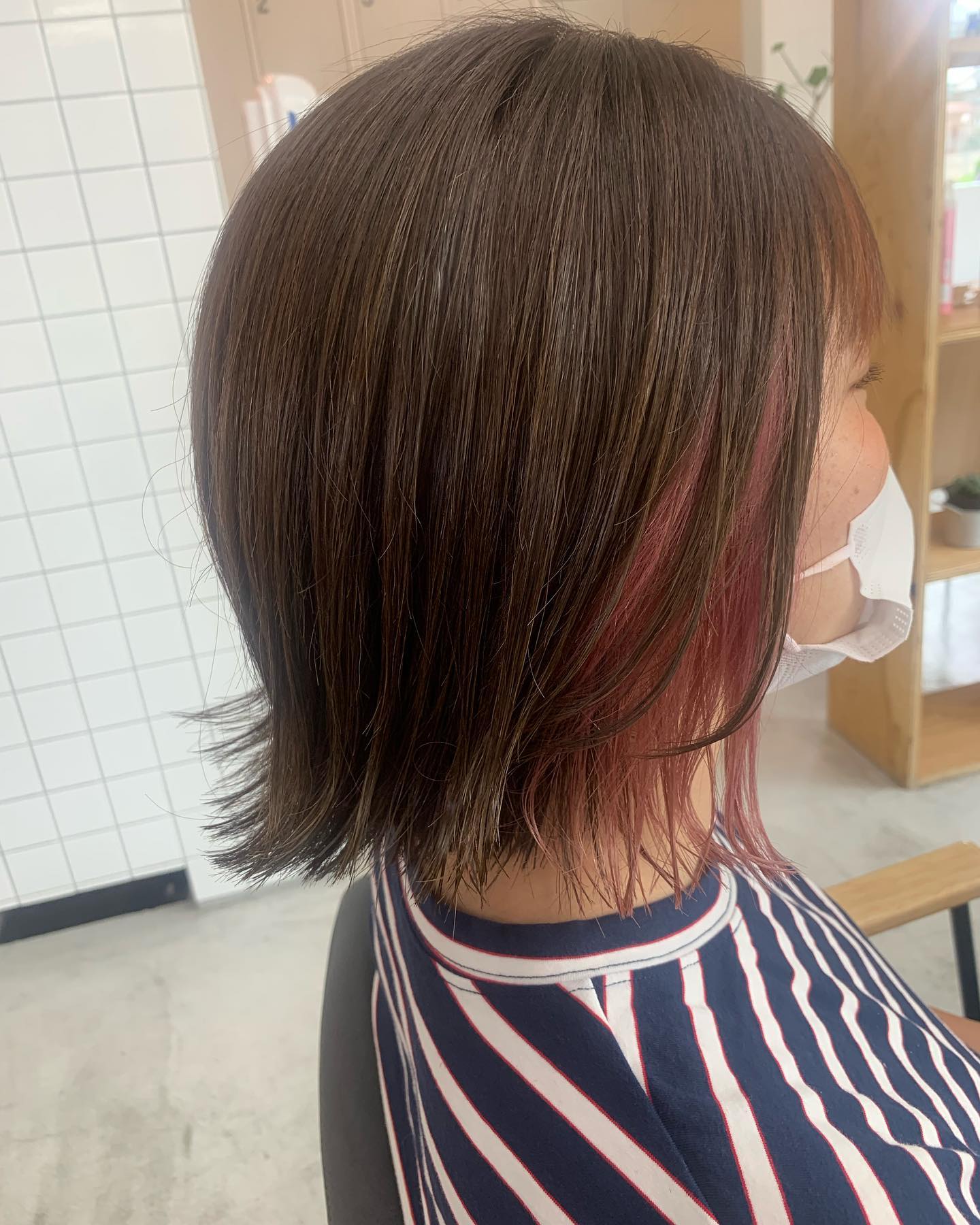 イヤリングカラー×ピンク by MIYUKI 古河美容室 reto イヤリングカラー インナーカラーピンク トラックオイル 外ハネボブ
