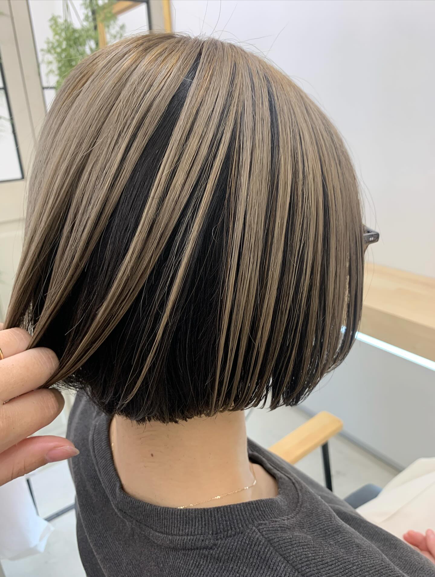 ブラック×ベージュ アンブレラカラー ブリーチ ハイトーンカラー 古河美容院 RETObyaura レトバイアウラ