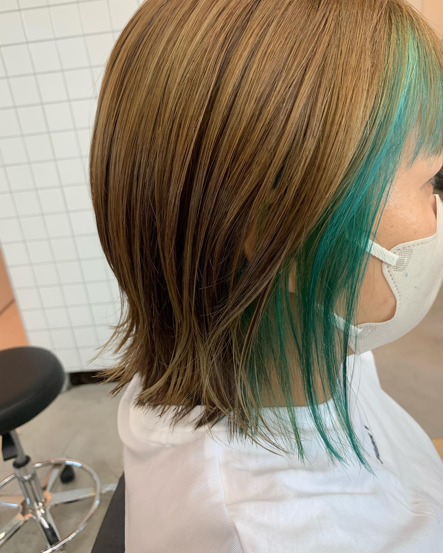 古河美容室 RETO インナーカラーグリーン エメラルドグリーン ベージュカラー