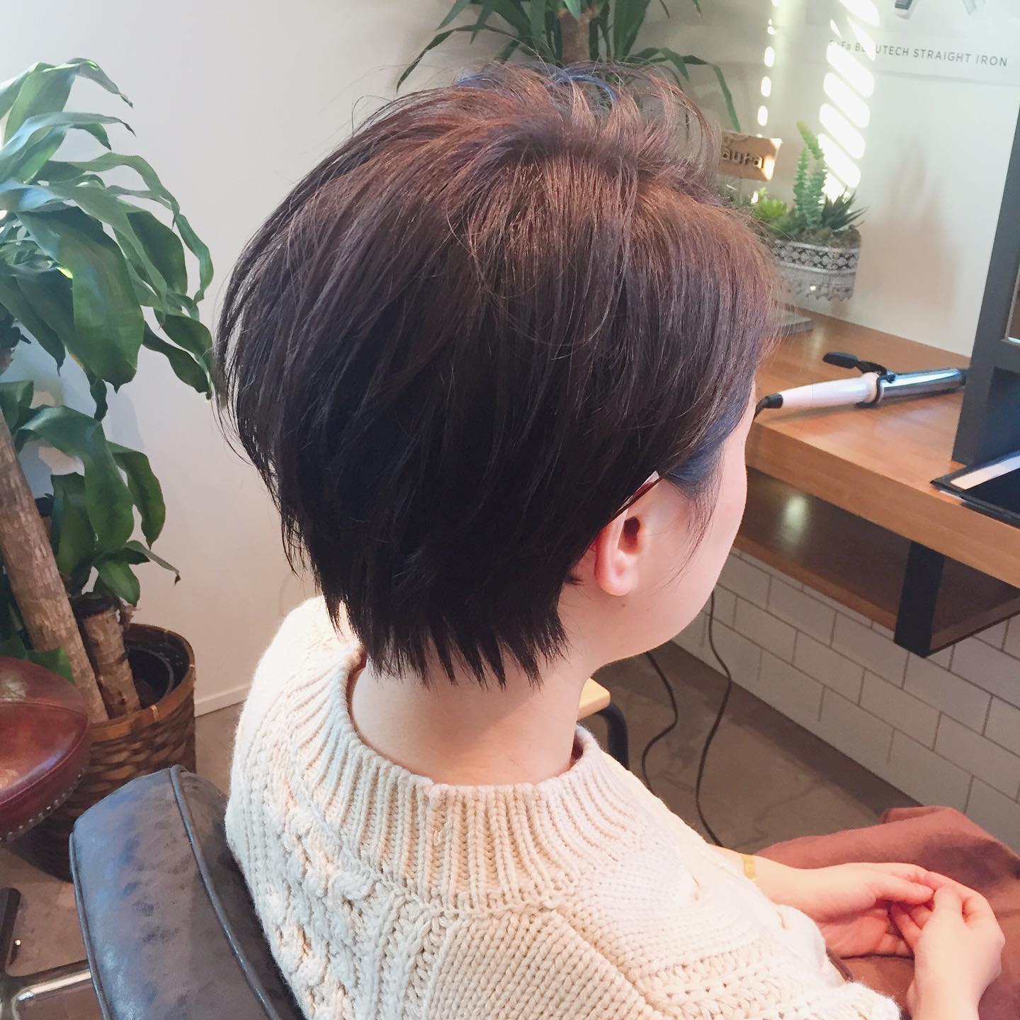 耳かけショート 26ミリで表面だけ少し外ハネに巻いてN.ナチュラルバームで仕上げます🥰 可愛いお客様ありがとうございました 古河市 古河市美容室 耳かけショート ショート女子 N. ナチュラルバーム デトックストリートメント カラー診断 襟足ギリギリ