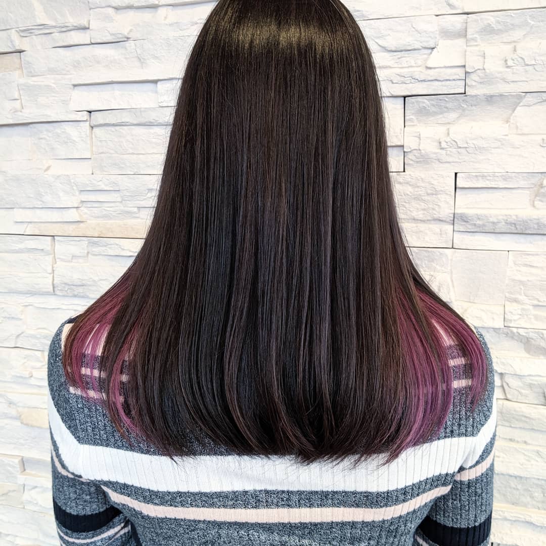 前にインナーにしたブリーチを活かして今回もインナーカラーピンク濃いめで
