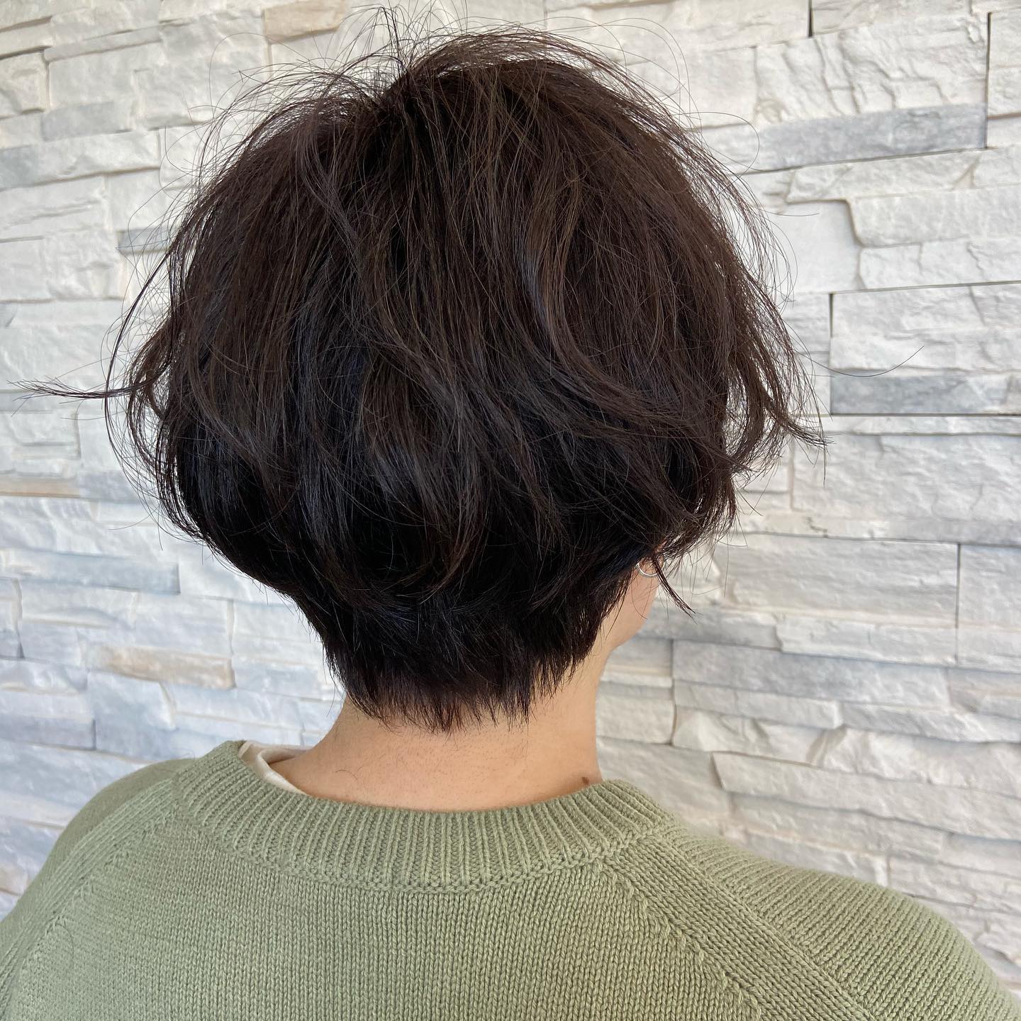 ボブからショートへ️ 地毛のクセがいい感じに馴染みました ありがとうございました 古河市 古河市美容室 aura くびれショート イメチェン リファドライヤー リファアイロン オーガニックノート デトックストリートメント