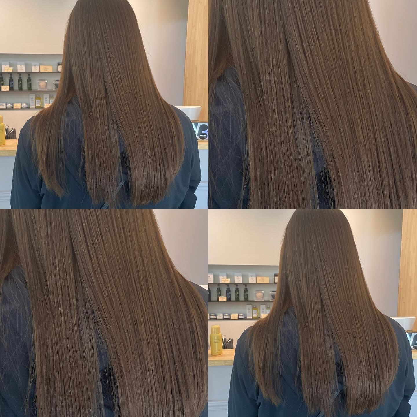 ブリーチなしカラー 明るめベージュ 明るめグレージュ 明るめカラー グレージュ ロングヘア 古河サロン アウラ アウラヘアサロン